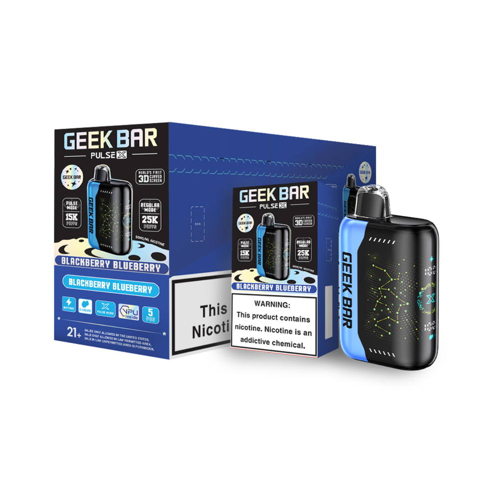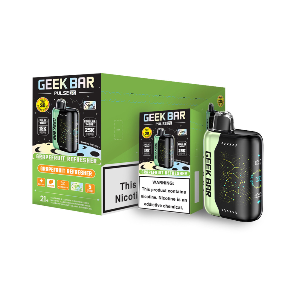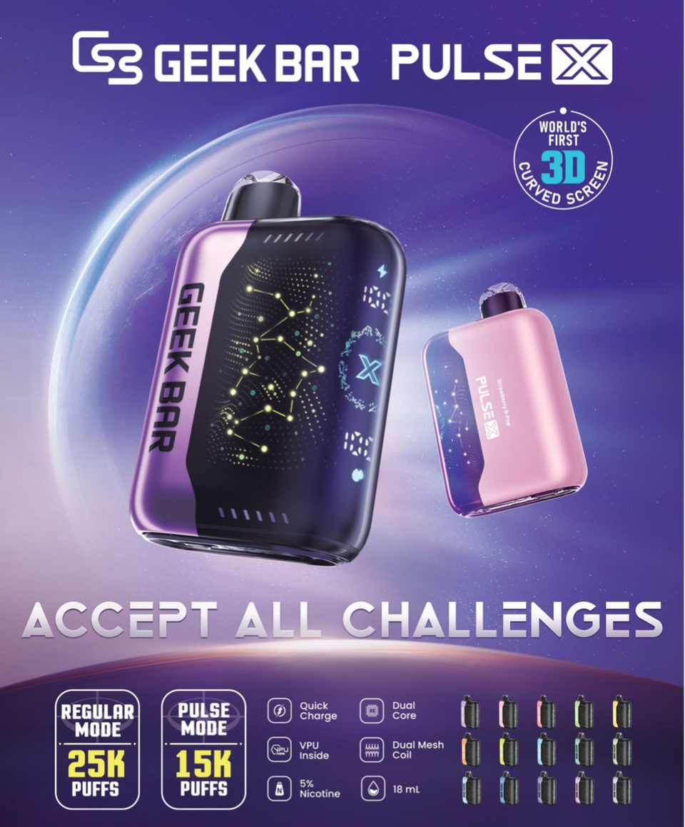 The Geek Bar Pulse X 25,000 Puff Disposable comes with the world’s first 3D curved screen, which offers a visually captivating display that enhances your experience and your premium disposable vape look even better. Powered by a dual-core processor with VPU technology, the Pulse X ensures smooth performance and quick responsiveness. Enjoy versatility with two vaping modes: Regular Mode for a consistent experience with up to 25,000 puffs, and Pulse Mode for a vibrant flavor journey with 25,000 puffs.