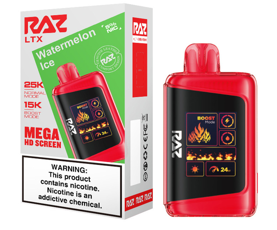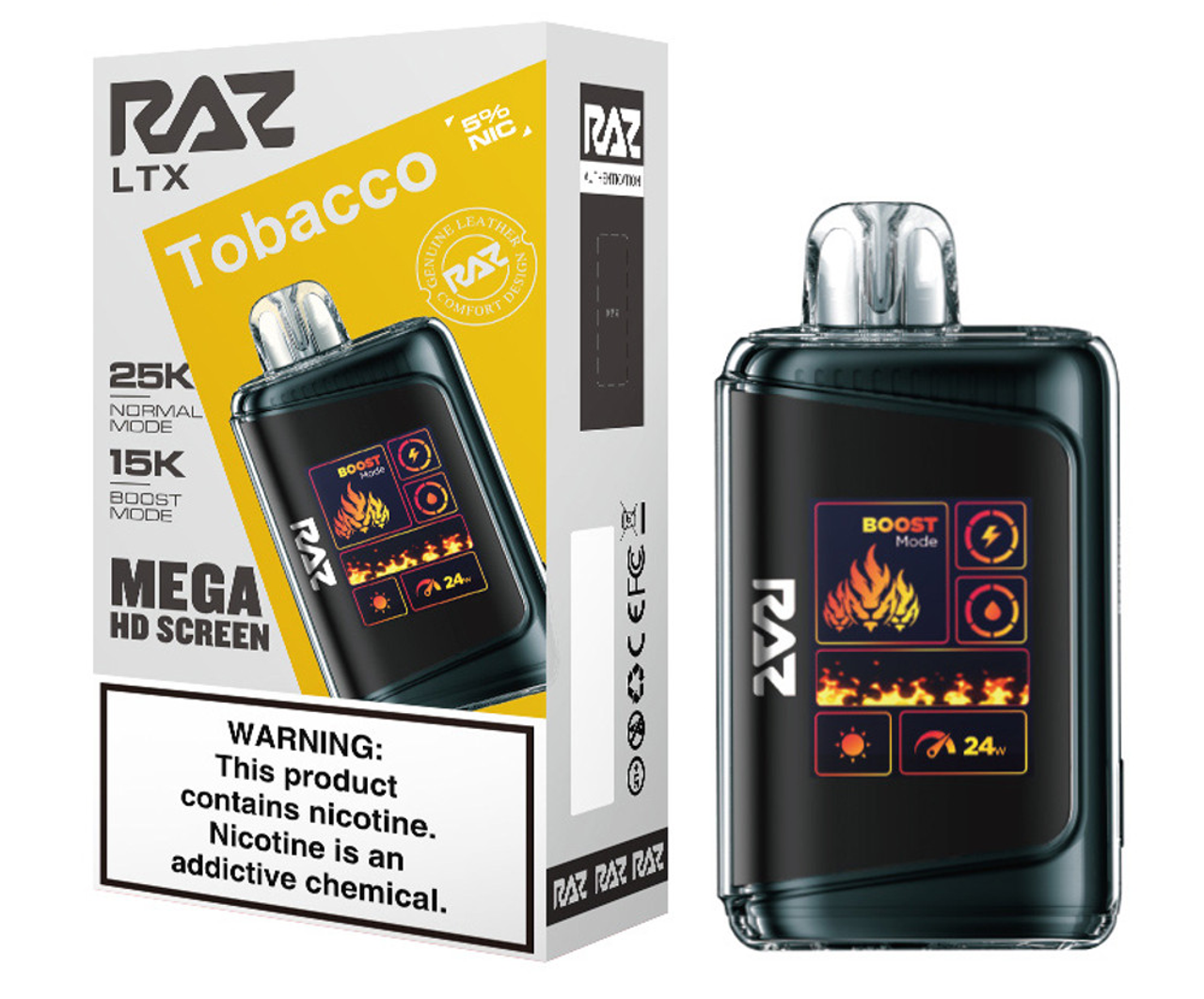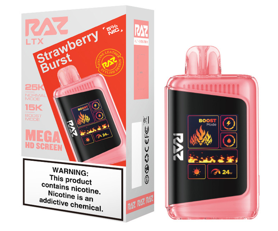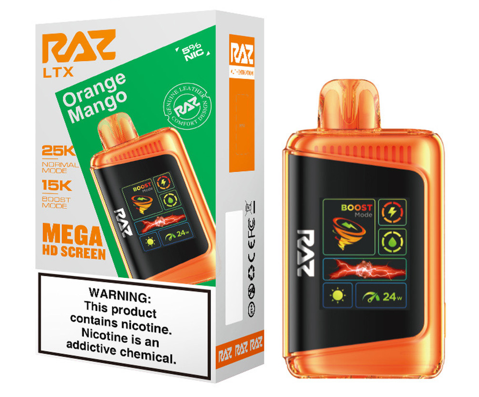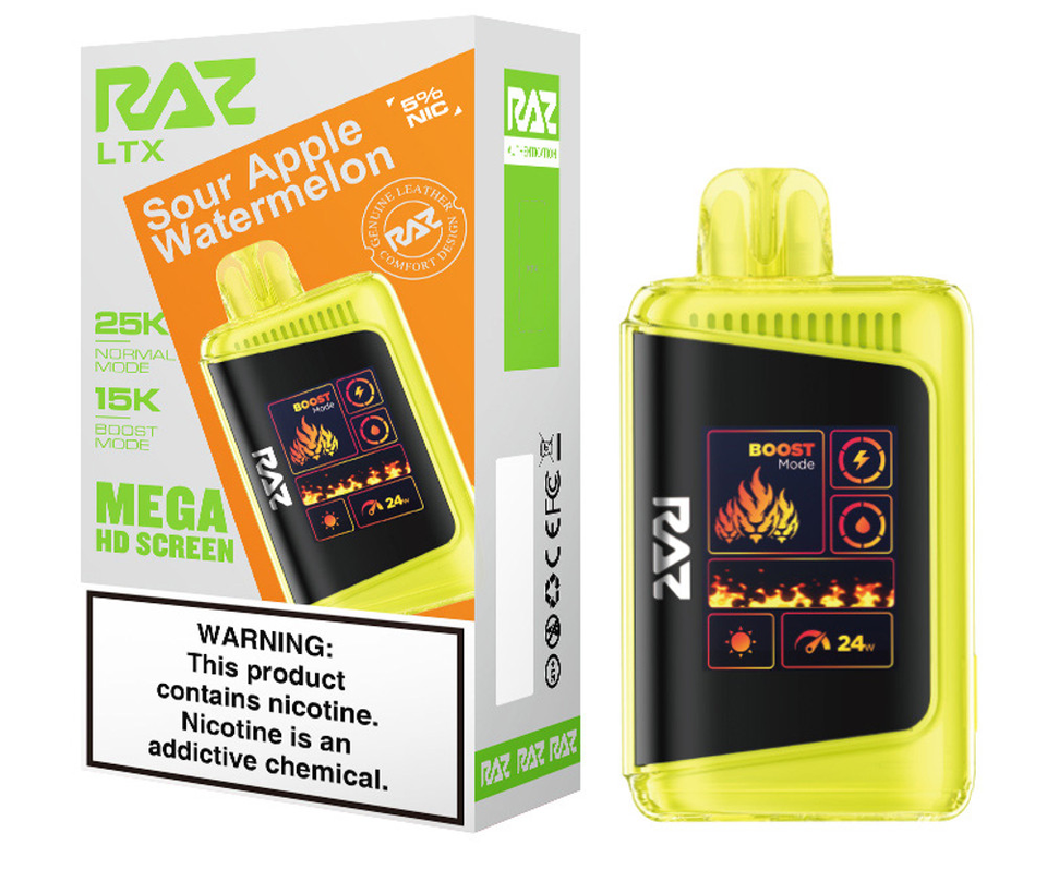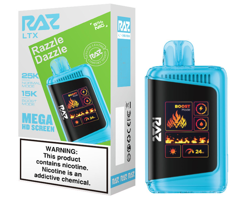 Step up your vape game with the RAZ LTX 25K, the latest evolution of the fan-favorite RAZ LTX 25000 series. This advanced disposable device combines cutting-edge performance, style, and convenience in a sleek, leather-finished design. Featuring up to 25,000 puffs in Normal Mode and 15,000 puffs in Boost Mode, the 16ML e-liquid capacity and 800mAh rechargeable battery ensure extended enjoyment with zero interruptions.