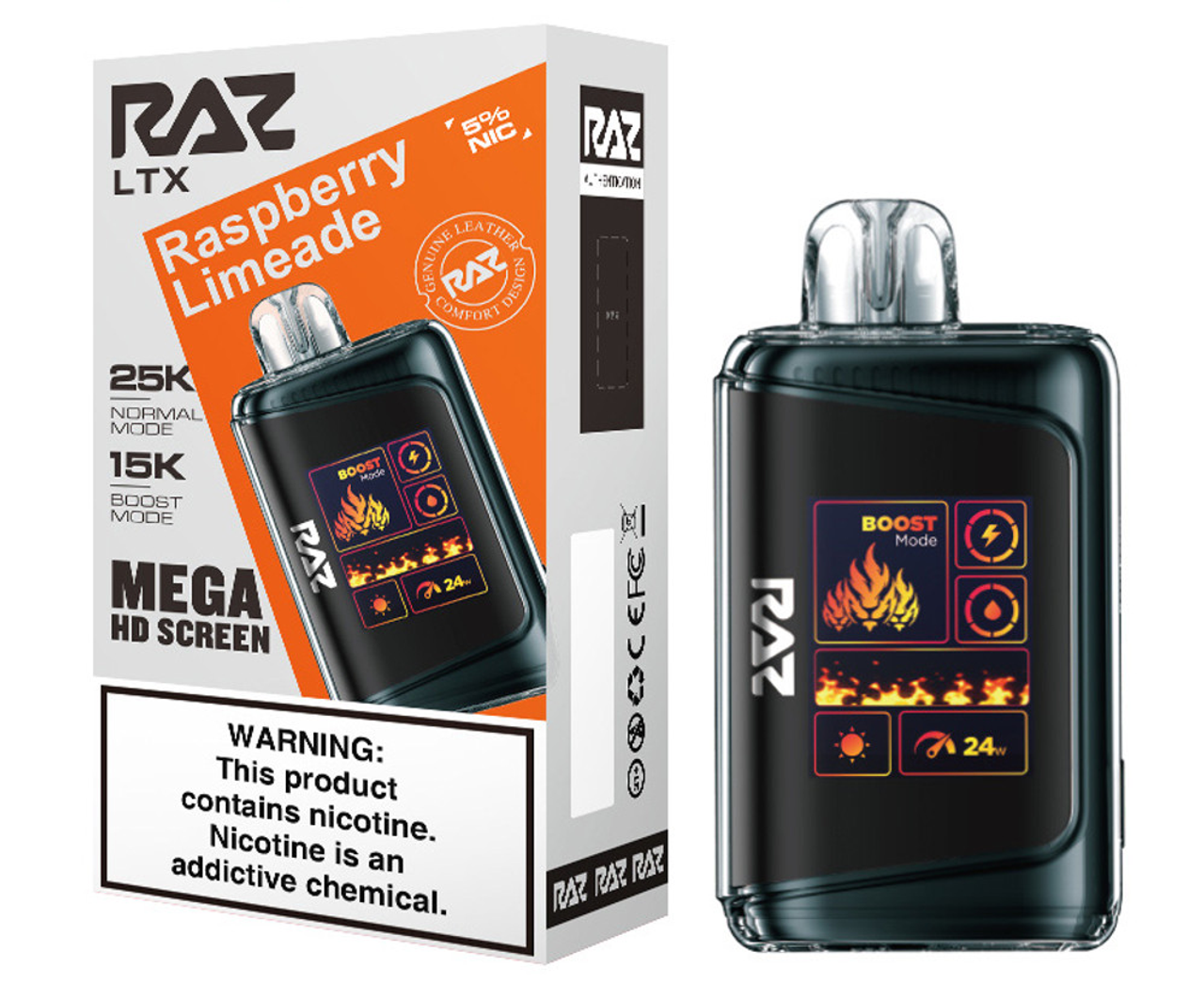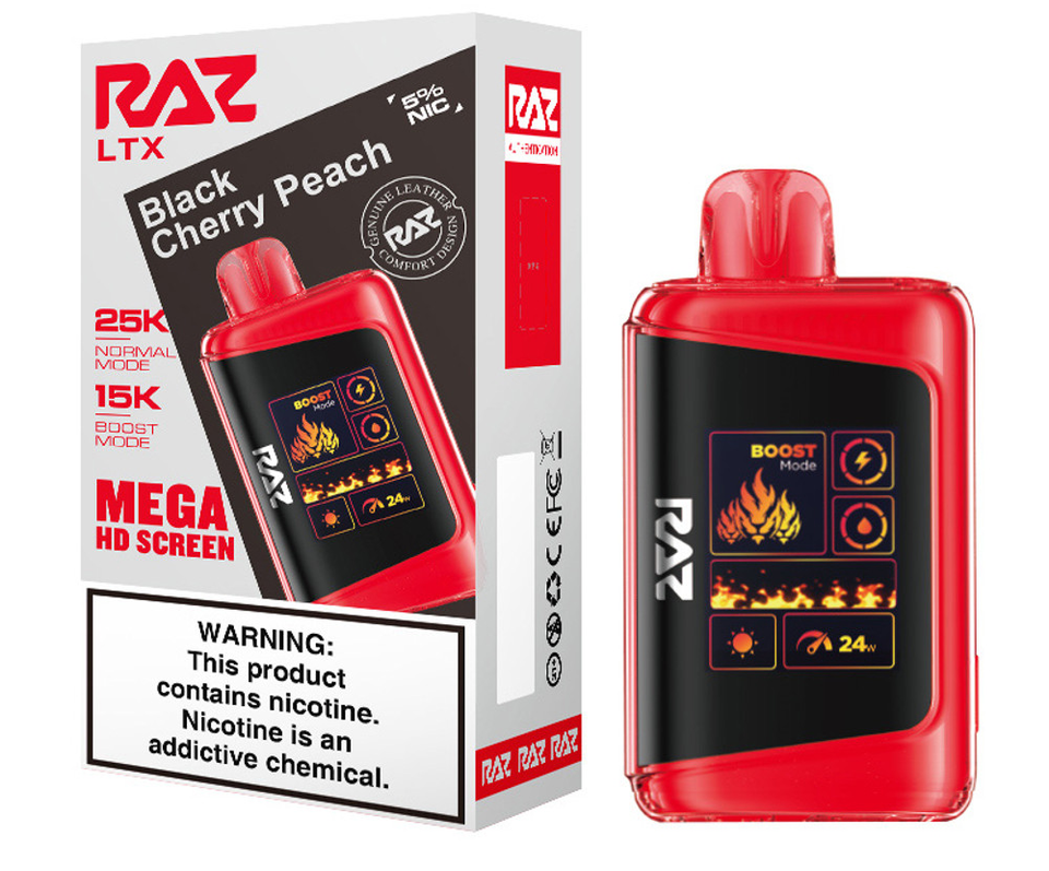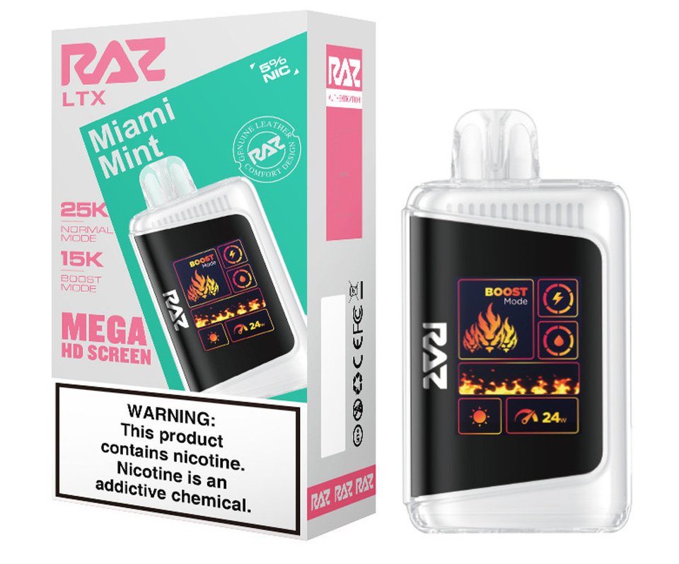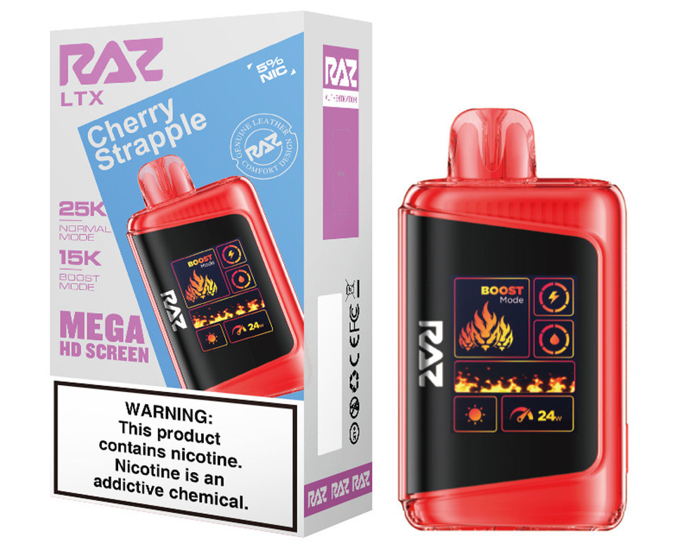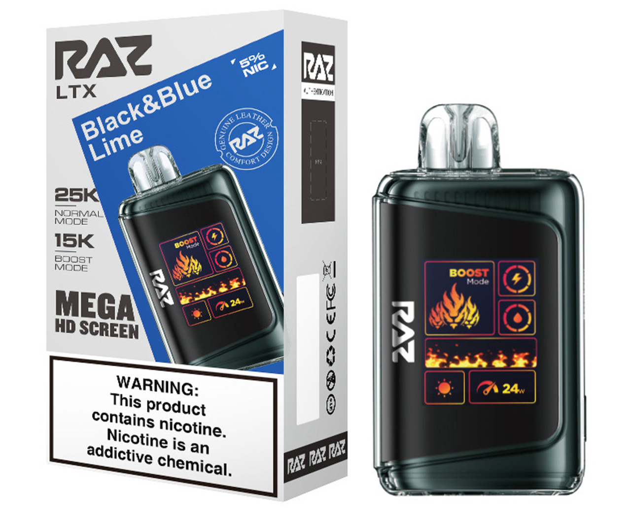 Step up your vape game with the RAZ LTX 25K, the latest evolution of the fan-favorite RAZ LTX 25000 series. This advanced disposable device combines cutting-edge performance, style, and convenience in a sleek, leather-finished design. Featuring up to 25,000 puffs in Normal Mode and 15,000 puffs in Boost Mode, the 16ML e-liquid capacity and 800mAh rechargeable battery ensure extended enjoyment with zero interruptions.