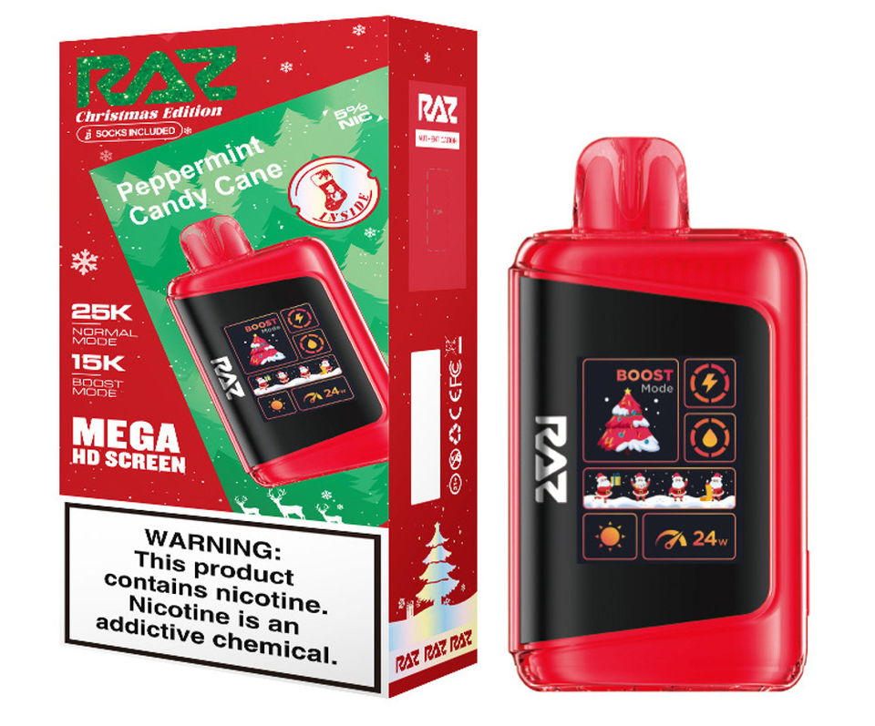 Available in both 5% nicotine (50mg) and 0% nicotine (nicotine-free) versions, it caters to every preference. Packaged in a festive Christmas Edition with complimentary socks, this Display of 5 is ideal for retail shelves or premium gifting.