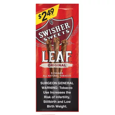 Swisher Leaf 3 for $2.49 cigars are the perfect choice for smokers seeking authentic flavor and unbeatable value. Each cigar is crafted using all-natural, rough-cut tobacco leaves and finished with a Connecticut broadleaf wrapper, known for its bold character and smooth burn.